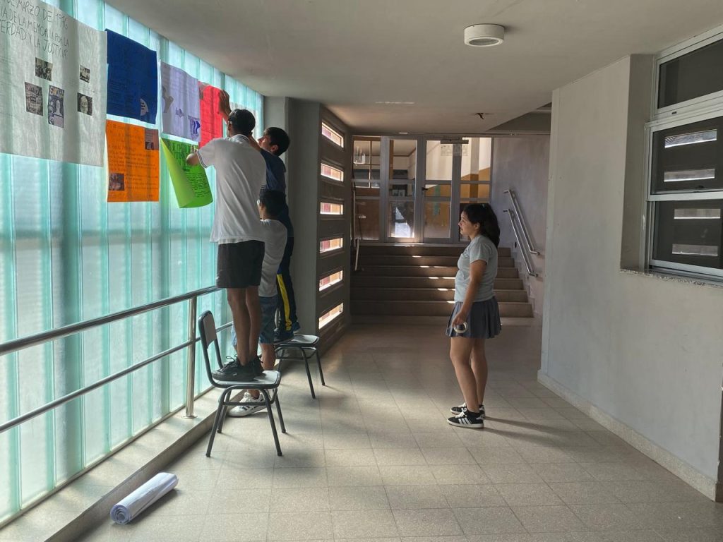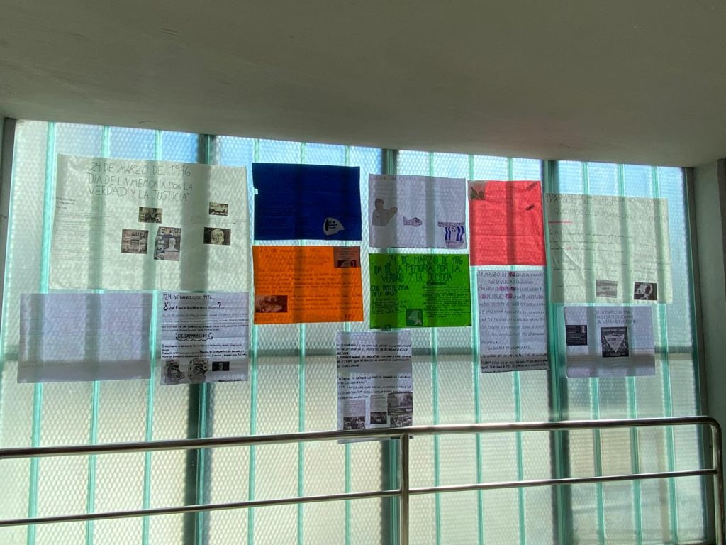 Los estudiantes de 5to. año turno tarde terminaron la cartelera junto a sus profesores para mañana dar inicio a las actividades recordando los hechos de la última dictadura militar.