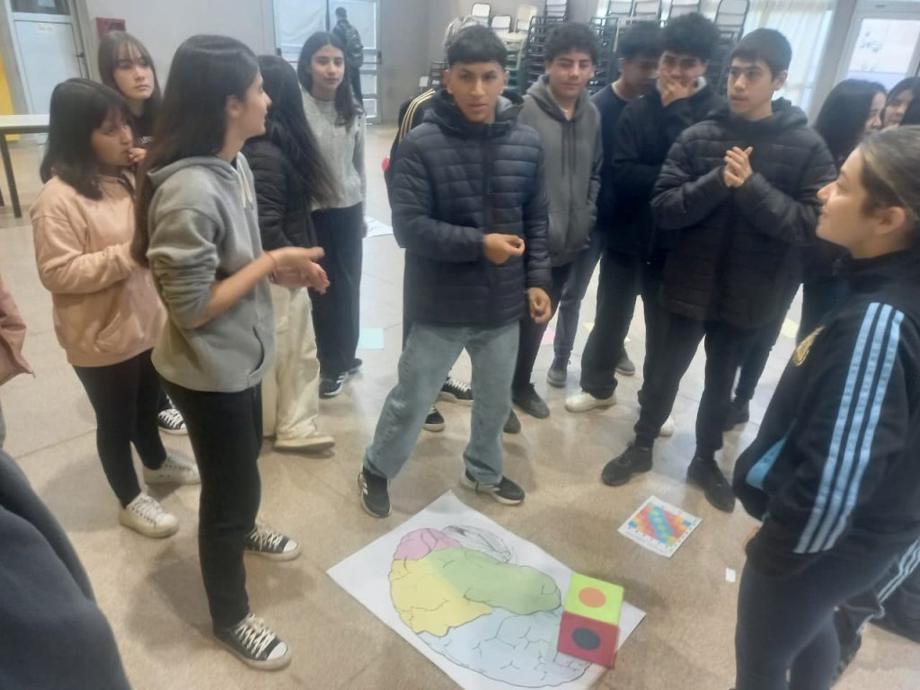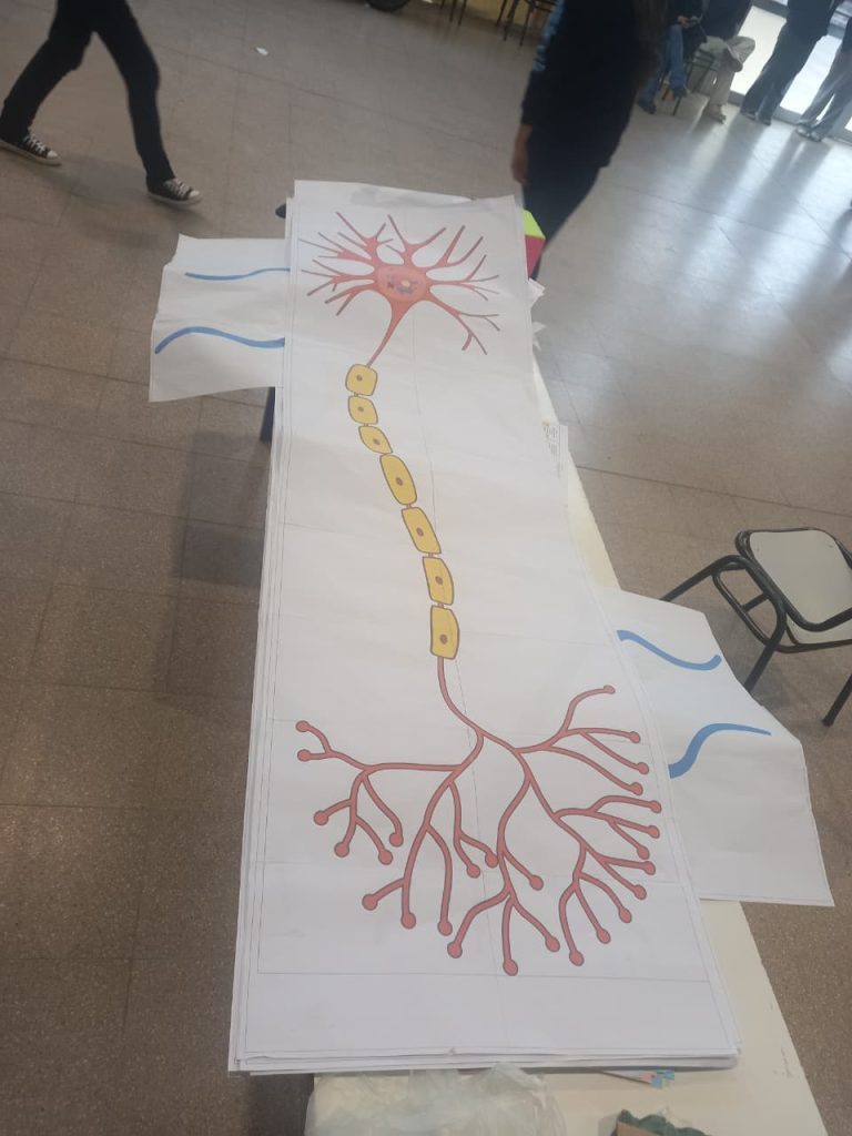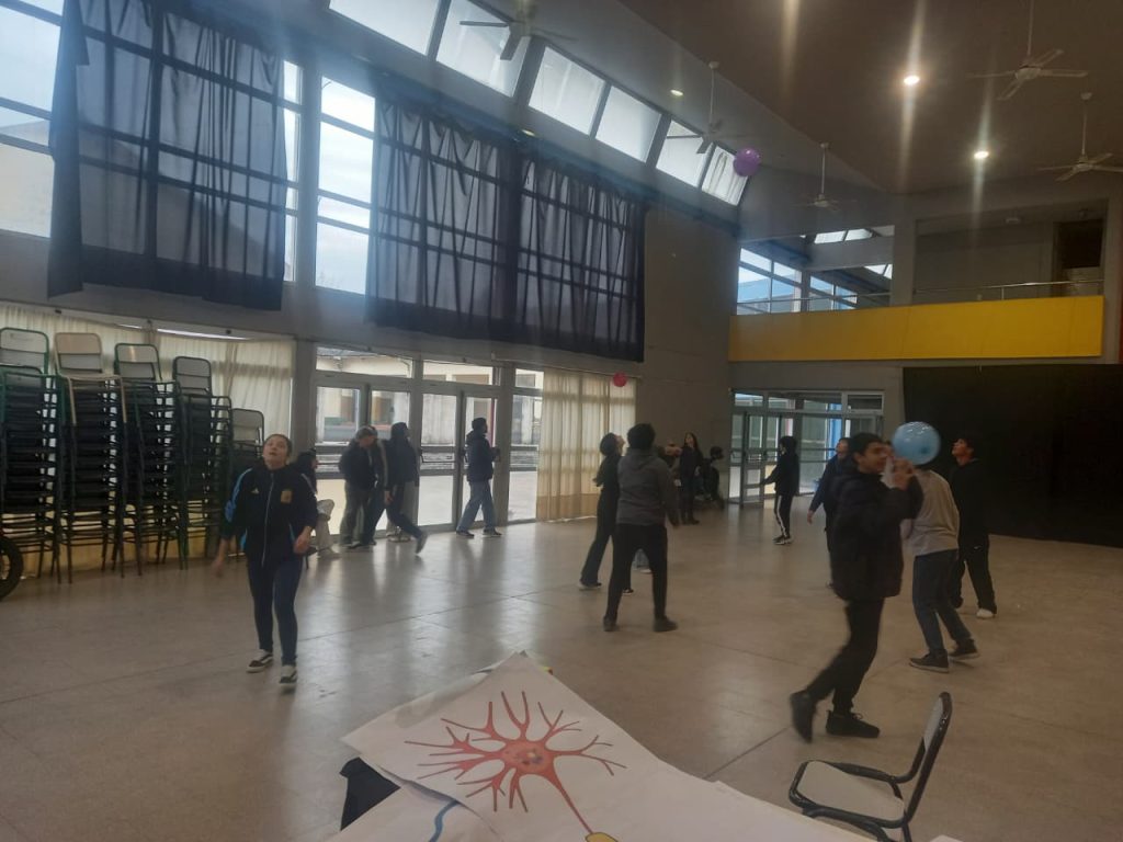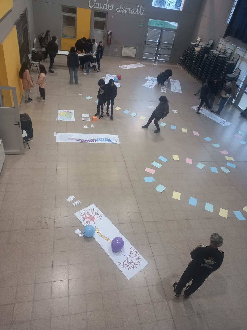 La actividad consistió en un juego dinámico y participativo con obstáculos y prendas que simulaban el proceso de transmisión del impulso nervioso a través de diferentes tipos de neuronas, así como la contracción muscular. También se trabajó el rol de los neurotransmisores, como la acetilcolina, la dopamina y la serotonina.