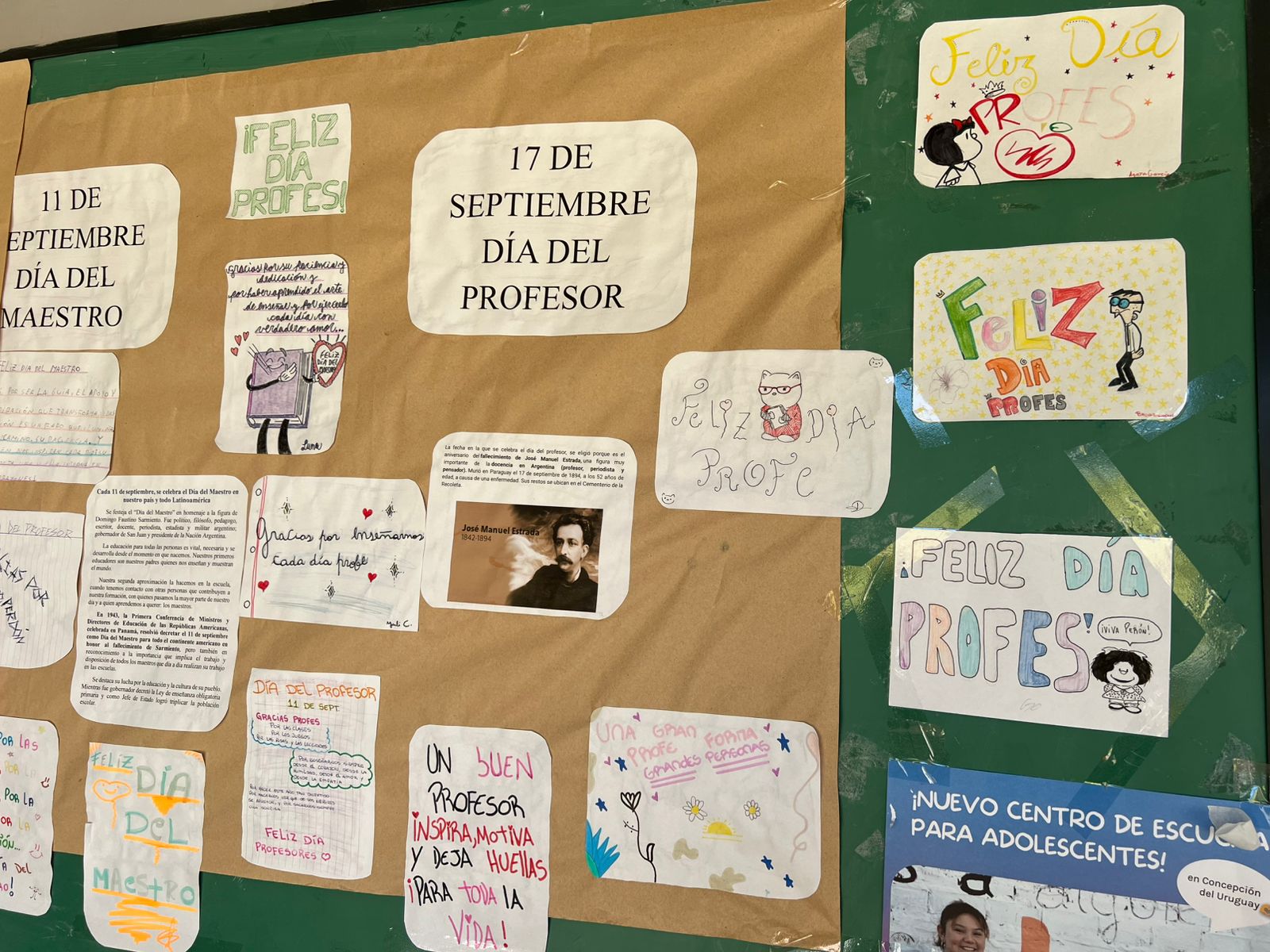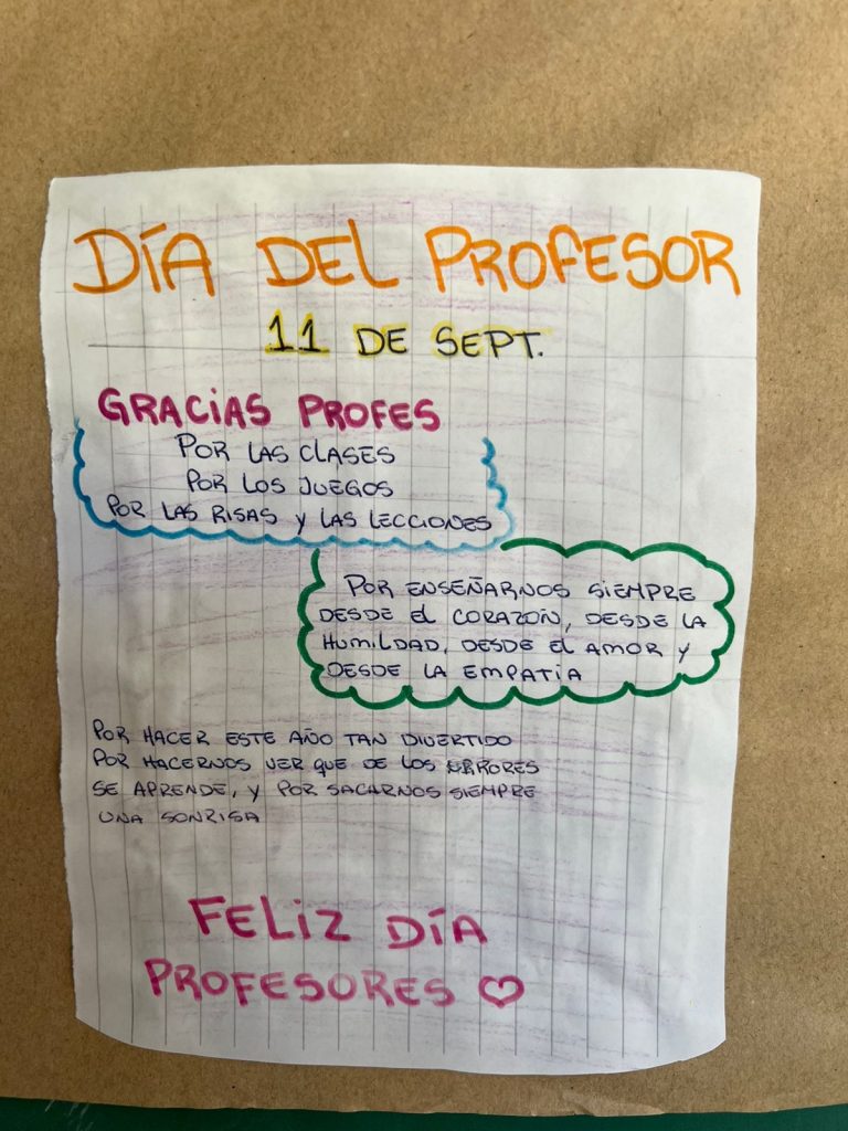 El 17 de septiembre se festejo en la escuela el día del profesor. Este día se recordó con mensajes especiales por parte de los alumnos a sus profesores los cuales fueron colocados en la cartelera de la escuela para ser compartidos entre todos.