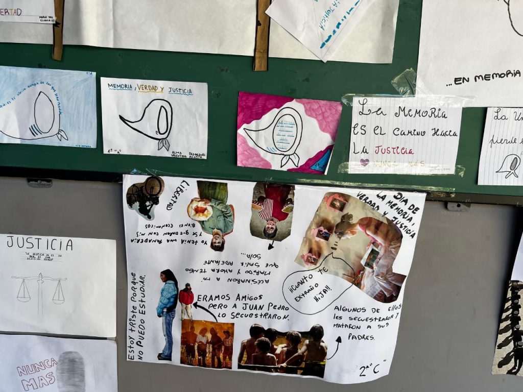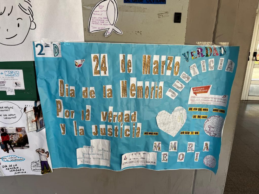 Entre las propuestas, se armó una cartelera con información, imágenes y frases vinculadas a la fecha. A su vez, en las aulas se desarrollaron actividades especialmente pensadas por los docentes, que incluyeron debates, análisis y producciones destinadas a comprender lo ocurrido en nuestro país. Estas actividades permitieron no solo conocer los hechos históricos, sino también reflexionar sobre su impacto en la sociedad actual y la importancia de defender los derechos humanos.